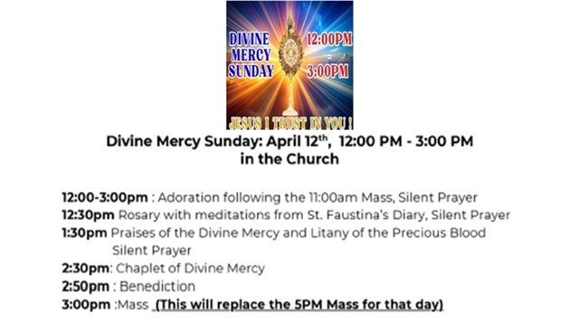 There will be no 5 PM Mass on Divine Mercy Sunday